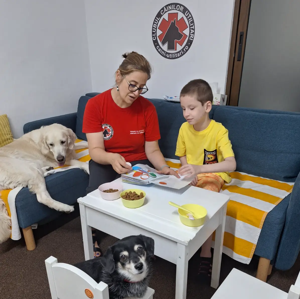 Ședințele sunt coordonate de terapeuți acreditați în colaborare cu câini antrenați special pentru activități terapeutice.